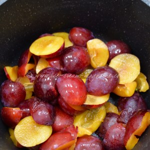 To this seasons, stunningly coloured, stoned fruit gently braised in a little sugar and and roughly half water to weight of fruit. The plum-pious-ness then left to cool. If I don’t stop ‘tasting it’ there will be none left.  A ‘jolly decent slug’ of Amaretto liqueur swirled to combine. The permeation will gift your writer to further taste, but only in the interest of her kindly readers. OK the quantity has incomprehensibly shrunk, evaporated, simply disappeared.