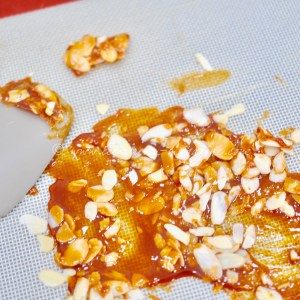 Place the almond brittle under lock and key, well away from the afore mentioned tasting department, it is acceptable to neatened and tidy but for aesthetics purposes only.