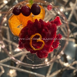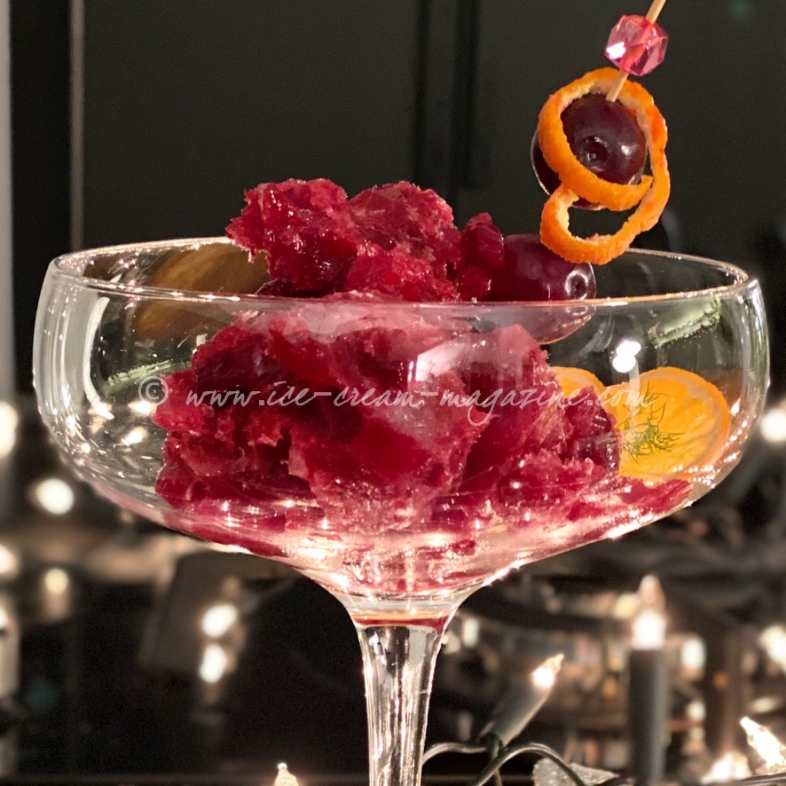 Cranberry orange no-gin sorbet served with r.a.o.k