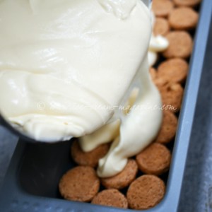 Once treated to a serious glug of Amaretto liquor, and an itchy-twitch of pure almond essence, same of vanilla essence which sealed the flavour deal.  Gently layered on to Amaretti biscuits. My lob and dollop technique reigns eternal before freezing for which I used a loaf tin (wrapped in waxed paper).