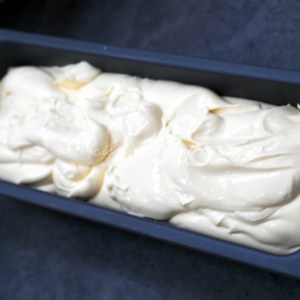 600ml of double/heavy cream whipped to ‘softish’ peaks. 1 small can of condensed milk roughly 400ml and (even more)roughly 500 ml of commercial custard.  Whizzed together they form a ‘seriously stable’ and effortless base which neither breaks the bank or ever fails to cheer the writer. No need to sweeten or for further concerns of tempering, splitting or curdling.  (that’s the base …not the writer)